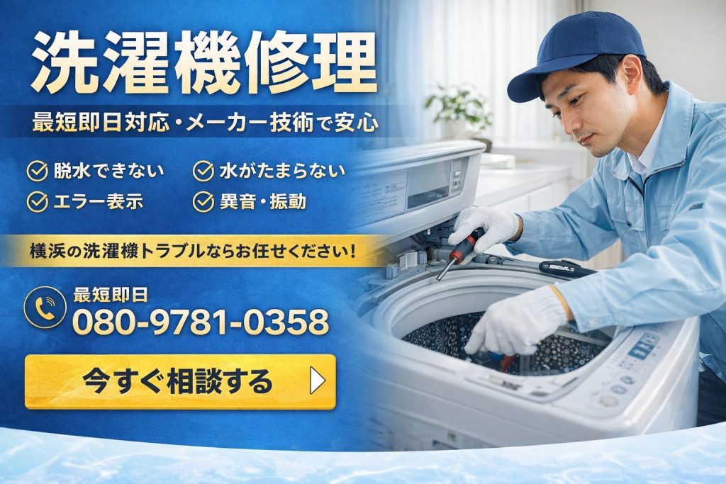 洗濯機修理ならマルセン東京にお任せください。メーカー技術をもとに安全・確実な修理を行います。横浜エリアを中心に最短即日対応が可能です。他社で断られた症状もお気軽にご相談ください。